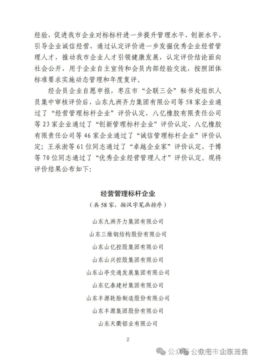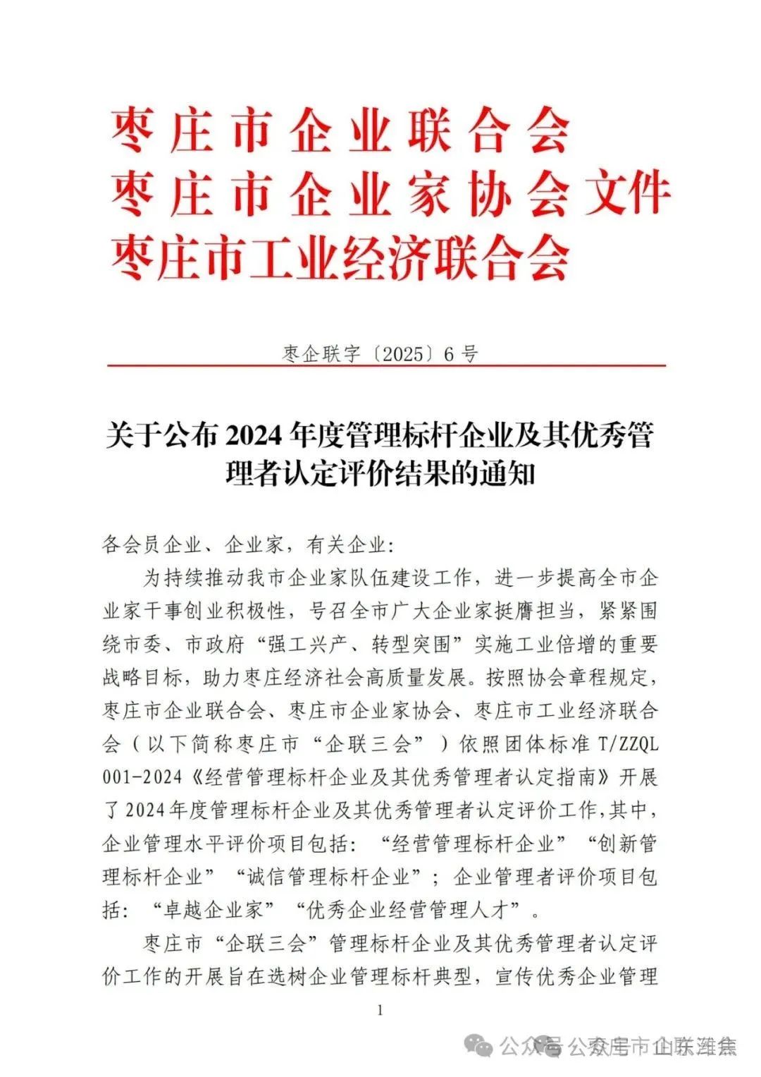 近日,棗莊市企業(yè)聯(lián)合會(huì)、棗莊市企業(yè)家協(xié)會(huì)、棗莊市工業(yè)聯(lián)合會(huì)發(fā)布《關(guān)于2024年管理標(biāo)桿企業(yè)及其優(yōu) 秀管理者認(rèn)定評(píng)價(jià)結(jié)果的通知》,山東濰焦集團(tuán)薛城能源有限公司、棗莊杰富意振興化工有限公司榮獲2024年度“經(jīng)營(yíng)管理標(biāo)桿企業(yè)”稱號(hào)。這是對(duì)兩公司經(jīng)營(yíng)管理水平、管理創(chuàng)新能力等方面的充分肯定和認(rèn)可。